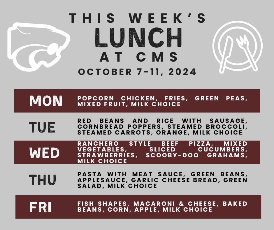 Next week, CMS will host our annual food drive! Don't forget to bring items to your homeroom teacher!